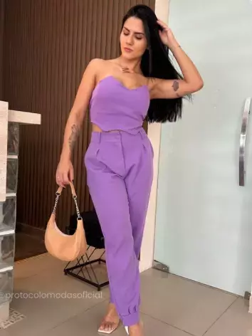 Conjunto Feminino de Cropped Sem Alça e Calça Jogger Fran, peças confeccionadas em tecido alfaiataria, modelagem e caimento excelente.